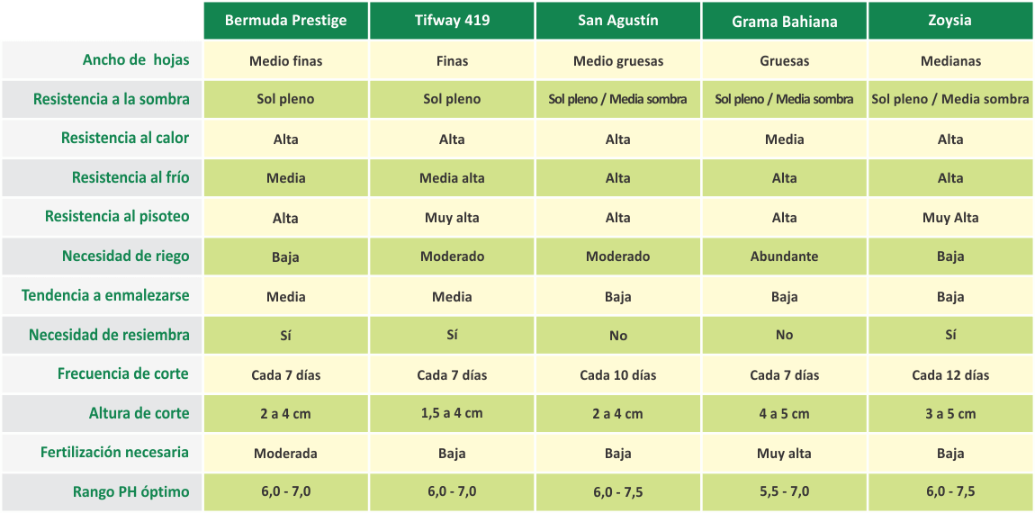 La particularidad de esta selección, es que resiste más el frío que el promedio de las bermudas, tiene un crecimiento más rápido, posee menos inflorecencias, lo que la hace visualmente más verde. Se recomienda un corte semanal y un plan de fertilización estival. Tiene muy buena recuperación ante el tránsito intenso, siempre y cuando esté a pleno sol. No se adapta a la sombra ni a la media sombra. Puede resembrarse con rye grass anual en época de dormición.